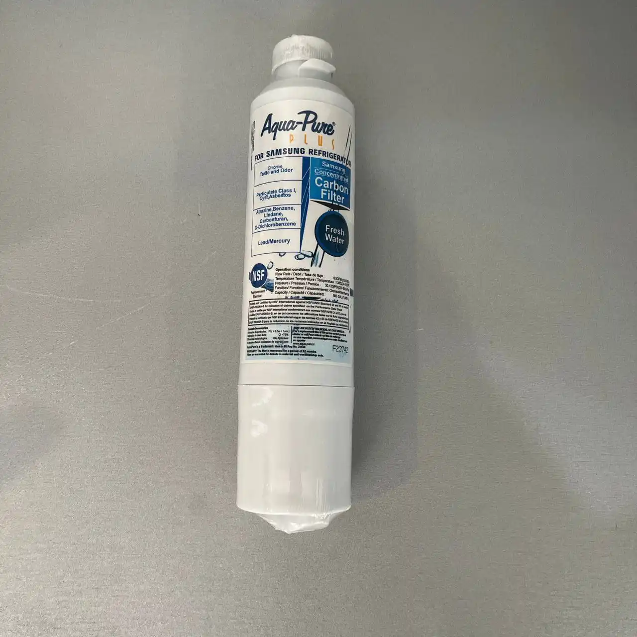 فیلتر یخچال سامسونگ داخلی موشکی آکوآپیور یکی از فیلترهای باکیفیت و استاندارد برای سیستم تصفیه آب یخچالهای سامسونگ است که بهصورت داخلی نصب میشود. این فیلتر با استفاده از کربن فعال فشرده، نقش مؤثری در حذف کلر، بو، طعم نامطبوع، رسوبات و ذرات معلق آب دارد.