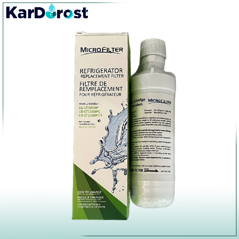 فیلتر تصفیه آب یخچال ال جی مدل ADQ74793501 یا lt 1000 p سازگار با یخچال LG.طول عمر 6تا 12ماه.ظرفیت 200 گالن.نصب آسان.طعم و بوی آب را بهبود می بخشد. سطوح بالای زنگ زدگی و رسوبات و مواد شیمیایی از جمله کلر ، مواد شیمیایی آلی و سموم دفع آفات را از آب پاک می کند. آب مزه عالی را در اختیار یخ ساز و آب ریز قرار می دهد.این محصول توسط تولید کننده اصلی (برند) تولید شده است.